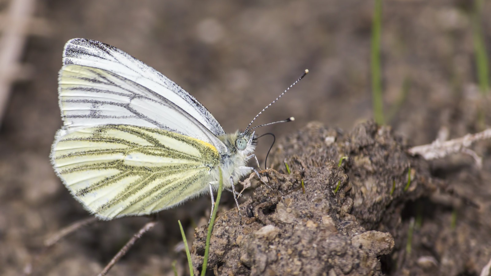 The cousin of the Small White, this butterfly has a black body and white wings with dull black markings on the wingtips. The green, vein-like markings on its under wings help to distinguish it from similar ‘White’ species. Females look like males, though some distinction can be made with the females usually having darker and larger black spots on their upper wings.